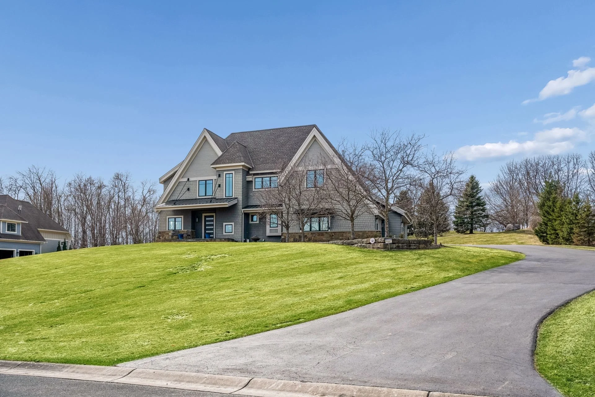 Set on an impressive 1.35-acre private site, this remarkable residence was designed by Eskuche and crafted by Kyle Hunt & Partners. Offering 4,764 finished square feet, the home features four bedrooms, five bathrooms, and a three-car garage, with a walkout lower level with an exercise room that could be a 5th bedroom if needed. Positioned atop a hill, believed to be one of the highest points in Orono, the property enjoys an incredible west-facing orientation, ideal for sunsets and outdoor living. Traditional at its core, the home seamlessly blends modern styling to create an enduring and transitional aesthetic. It is also in the coveted Orono school district.